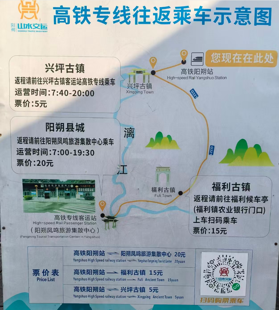 | Bahnhof Yangshuo | Yangshuo Fengming Touristenzentrum | 20 CNY |